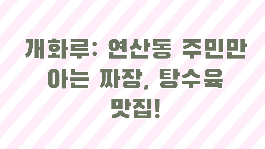 그것도 그냥 짜장면이 아닌, 부산 연산동에서 간짜장과 탕수육으로 명성이 자자한 "개화루"의 이야기입니다. 이미 동네 주민들 사이에서는 소문난 맛집으로 통하는 이곳의 매력을 파헤쳐 보겠습니다.