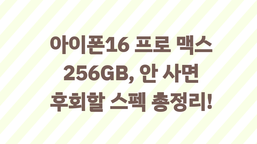 새로운 아이폰을 기다리는 당신, 아이폰16 프로 맥스 256GB에 대해 궁금하신가요? 최신 아이폰은 언제나 우리의 기대를 뛰어넘는 혁신을 선보입니다. 이번 아이폰16 프로 맥스 256GB는 어떤 놀라운 기능과 성능으로 우리를 사로잡을까요? 지금부터 아이폰 16 프로 맥스 256에 대한 모든 것을 파헤쳐 보겠습니다. 아이폰16 프로 맥스 256GB, 스펙 완전 분석아이폰16 프로 맥스 256GB는 6.9인치 Super Retina XDR 디스플레이를 자랑하며, A18 Pro 칩으로 구동됩니다. 8GB RAM과 256GB 저장 공간은 여러분의 디지털 라이프를 더욱 풍요롭게 만들어 줄 겁니다. 카메라 성능도 빼놓을 수 없죠. 전면 12MP, 후면 초광각 48MP, 광각 48MP, 망원 12MP 5배 테트라 프..